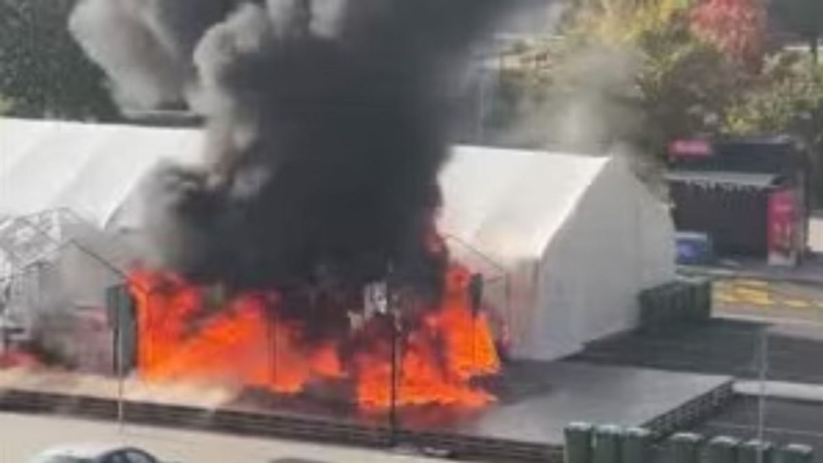 A fire and reported shooting at a camp hosting loyalists of Serbian President Aleksandar Vucic in central Belgrade on Wednesday injured one person, officials said, while Vucic described the incident as a “terrorist attack.” The fire erupted...